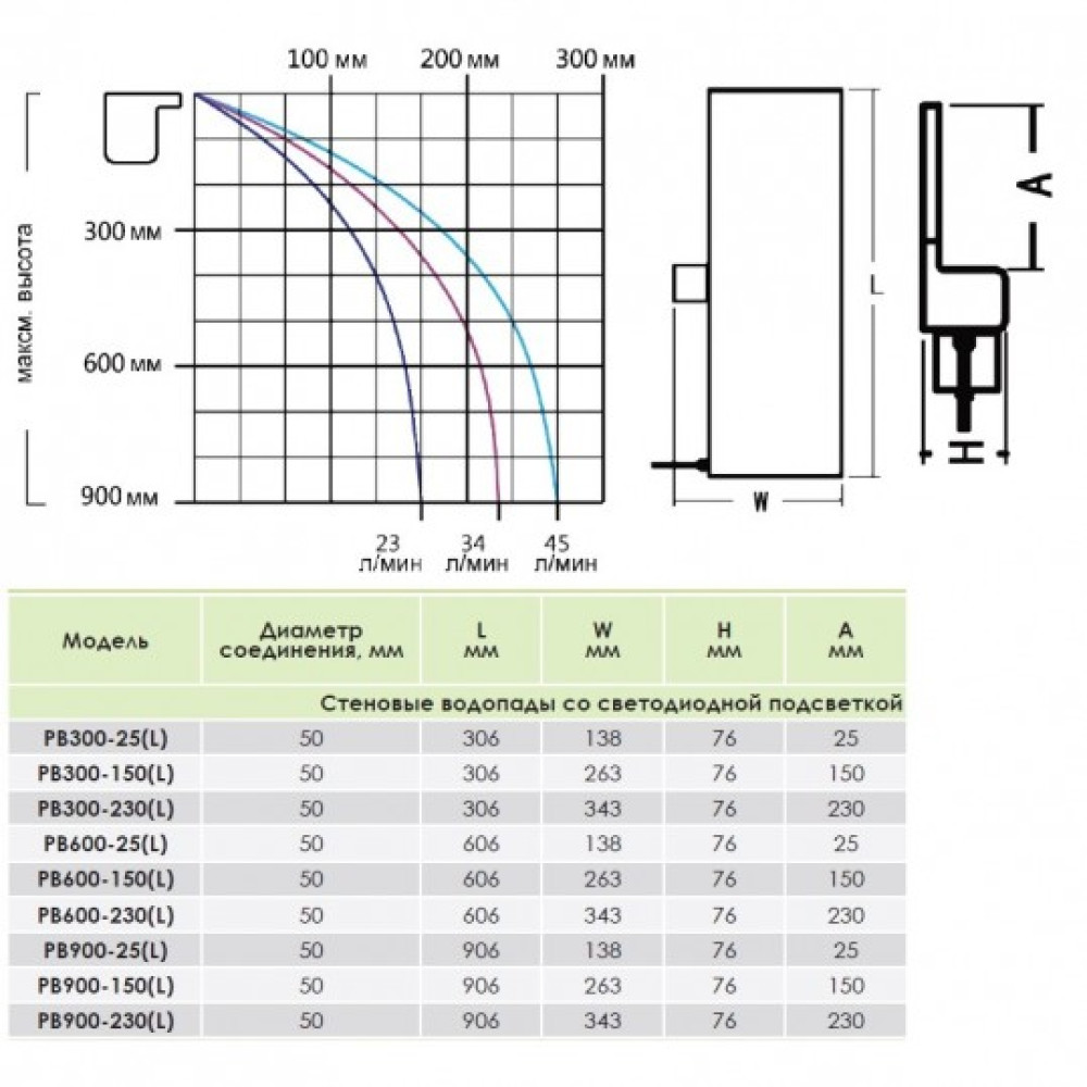 Как купить стеновой водопад EMAUX PB 300-25(L) с LED подсветкой?