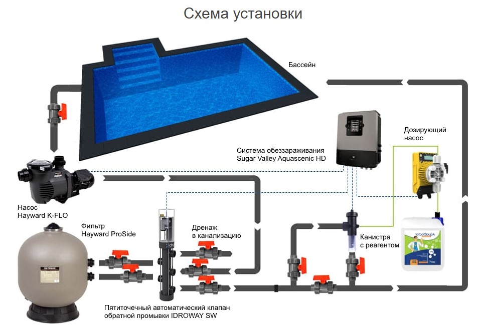 фильтров бассейна. Клапан подключается при помощи таймера либо умного