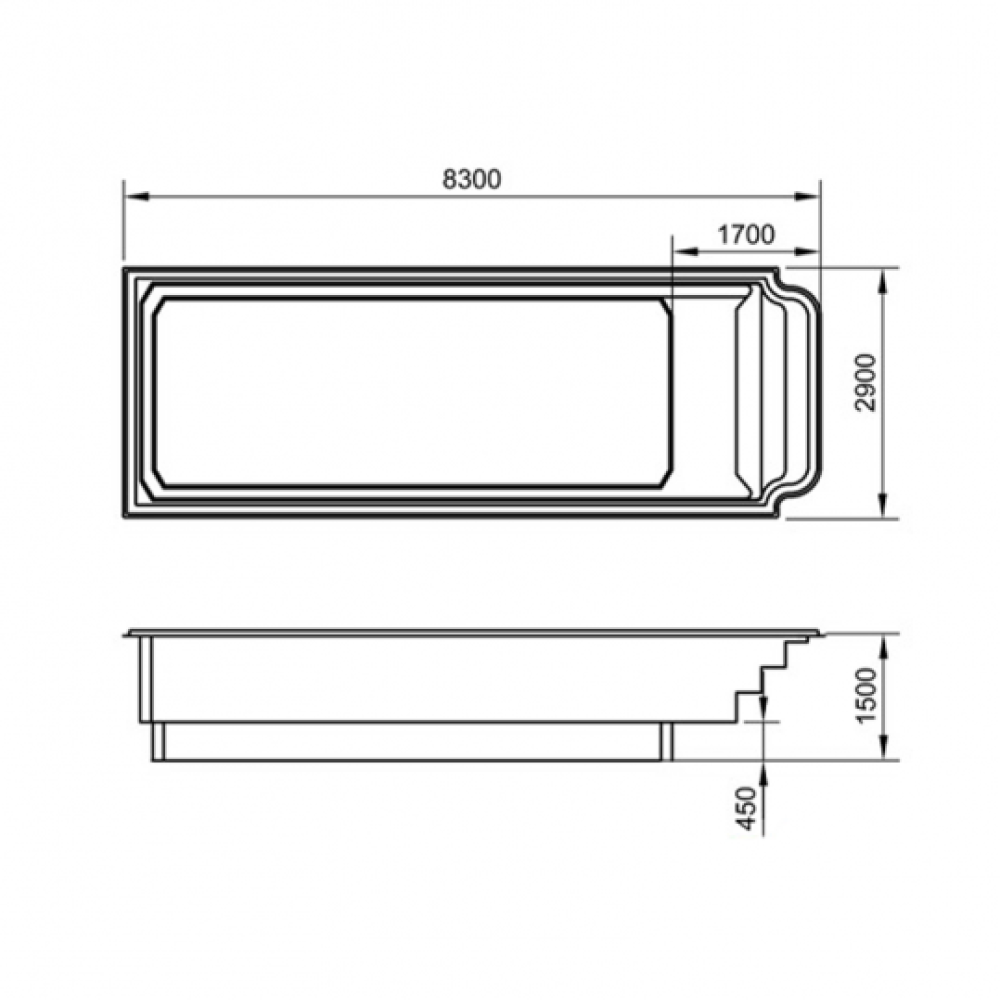 Композитный (стекловолоконный) бассейн Атлантида 8 Премиум 8,30 × 2,90 × 1,50 м