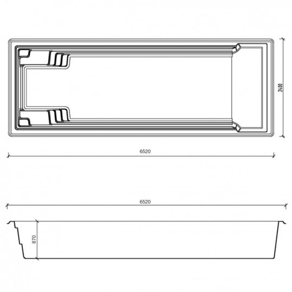 Если вы планируете купить композитный бассейн компактного формата, BABY POOL 6,52 × 2,40 × 0,88 м предлагает: