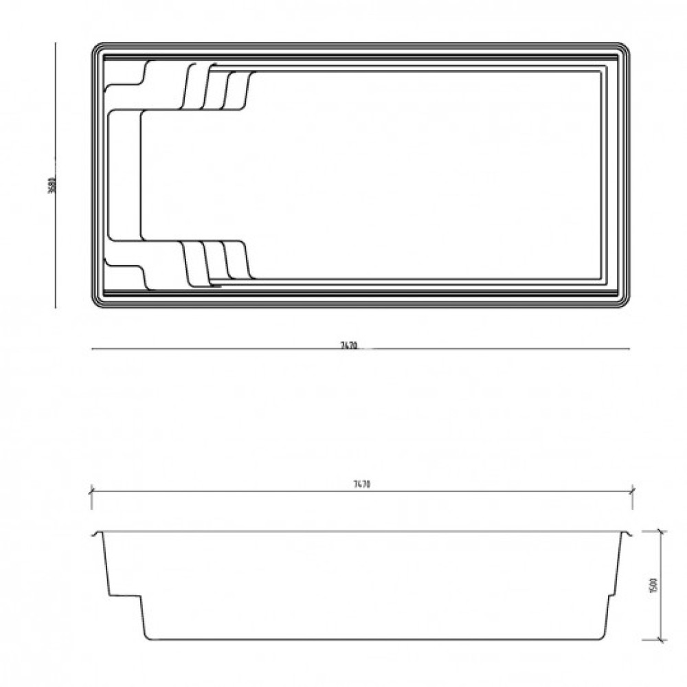 Композитный бассейн COMPASS POOLS FUN 74 – 7,48×3,68×1,50 м