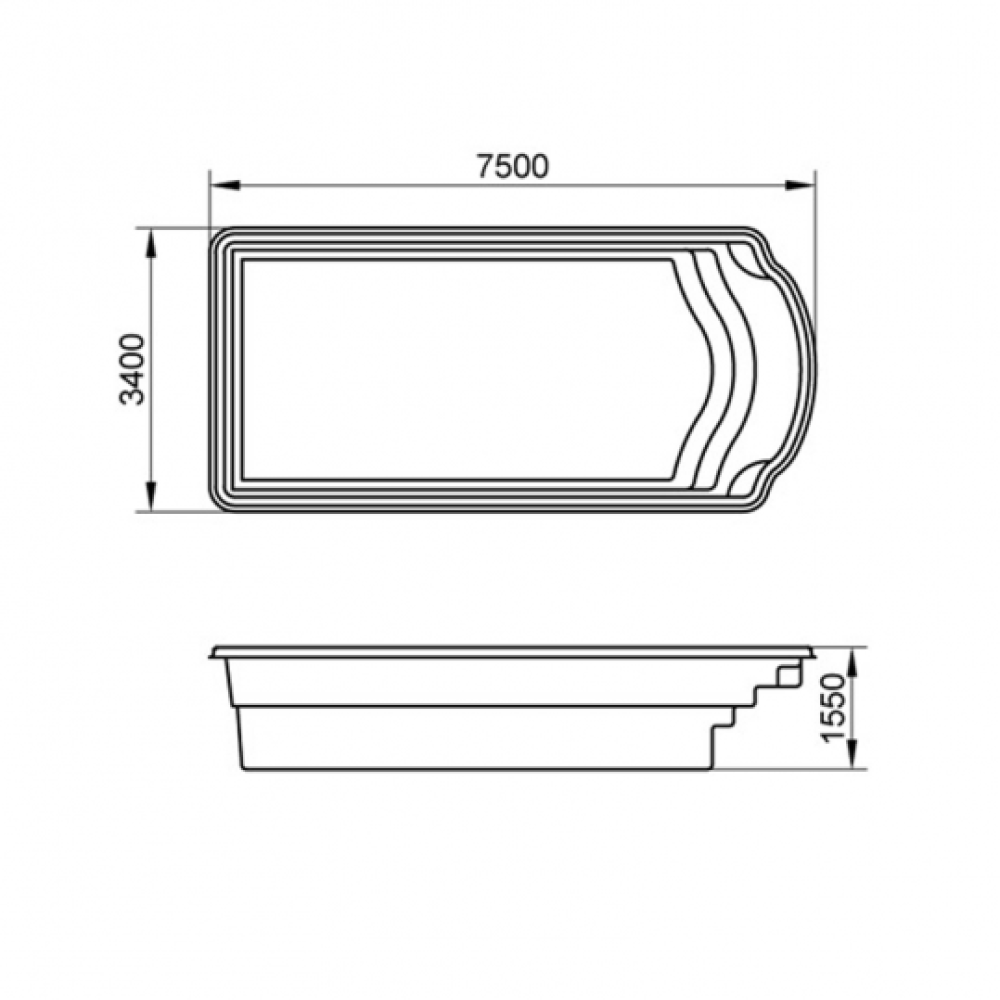 Композитный (стекловолоконный) бассейн Корвет Стандарт 7,1 × 3,3 × 1,5 м