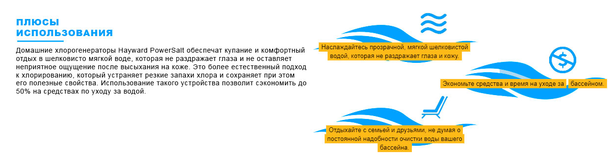 Бассейн и СПА — это отличный отдых и способ укрепления здоровья. Для обеспечения чистоты и безопасности воды необходимо проводить своевременное обеззараживание. Хлоргенератор для бассейна — это один из простых и результативных методов для уничтожения болезнетворных микробов, вирусов и плесени. Использования хлоргенератора является абсолютно безопасным для людей, не вызывает никаких аллергических реакций и раздражений кожи, так как в качестве реагента выступает обычная соль. Ее можно приобрести в виде таблеток, что выпускаются в больших упаковках. При такой дезинфекции не используются никакие дополнительные химреактивы. Электролиз для бассейна прост в обслуживании, работает бесшумно, применяется для бассейнов объёмом 110 м.