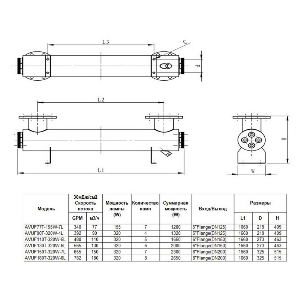 - Скорость потока: 72 м³/ч при 40 мДж/см2