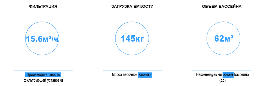 Фильтровальная установка Emaux FSF650 рекомендуется к использованию в бассейнах объемом до 62 м3. Производительность оборудования составляет 15,6 м3 в час. В качестве засыпки используется кварцевый песок фракции 0,5-0,8 мм, загрузка материала – 145 кг.
