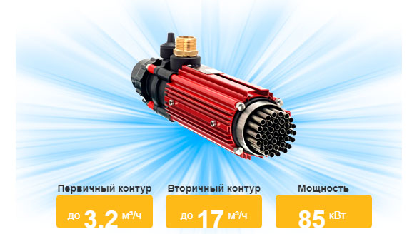 Расход воды в первичном контуре: 40 л/мин; расход воды во вторичном контуре: 283 л/мин