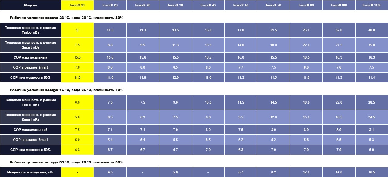 Бренд Fairland – признанный лидер в производстве оборудования для бассейнов, специализирующийся на тепловых насосах. Компания основана в 1999 году и известна внедрением инноваций, таких как технология Full-inverter, обеспечивающая бесшумную и эффективную работу компрессора. Линейка InverX – это флагманские модели производителя, демонстрирующие наилучшие показатели энергоэффективности. По данным Fairland, инверторные насосы серии InverX обеспечивают COP на 20–30% выше по сравнению с аналогами с технологией Inverter-Plus и до 50–70% выше, чем у стандартных инверторных тепловых насосов предыдущих поколений. Таким образом, выбирая модель InverX 21, вы получаете одно из самых передовых решений на рынке.