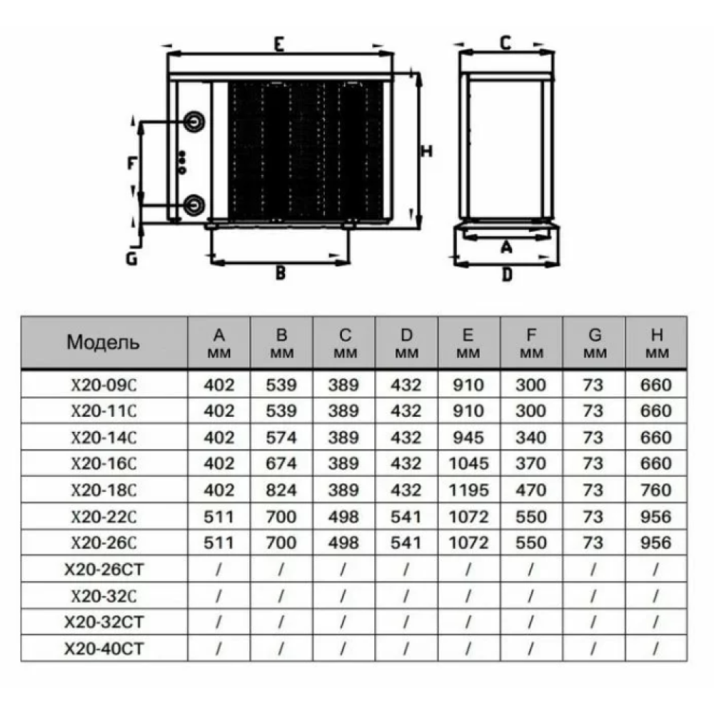Инверторный тепловой насос Fairland X20-32T (32 кВт, 380 В) обладает следующими ключевыми параметрами: