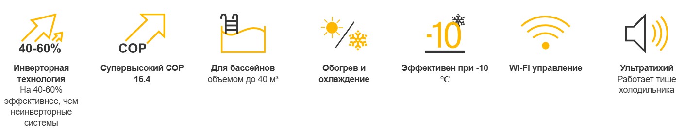 Охлаждение воды в жаркую погоду, когда вода становится «слишком теплой» и купание уже не приносит удовольствия. Диапазон настройки температуры охлаждения: от +28 до +8 °C.