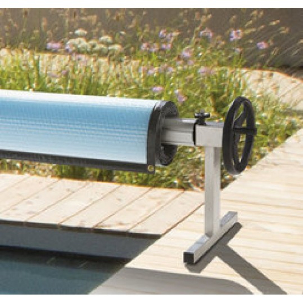 Для сохранения воды в вашем резервуаре в чистоте, а также в целях уменьшения испарения и теплосбережения, рекомендуется использовать солярное покрытие. При помощи сматывающего устройства Delinox вы без особых затруднений сможете разматывать пленку для накрытия. Данная модель устанавливается возле бассейна и предназначена для покрытия роллеты максимального размера 4,6-7,6х15м. Такой аппарат легко передвинуть в любое удобное место при необходимости. Конструкция оснащена надувными колесами и имеет регулируемую систему торможения. Каркас сматывающего устройства изготовлен из материала, устойчивого к коррозии, и имеет долгий срок службы. Стойки конструкции выполнены из нержавеющей стали, а вал - из алюминия.