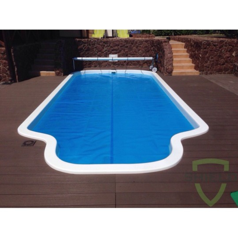 Самым простым и эффективным способом сохранить тепло и снизить испарение воды в бассейне является солярная пленка. Это легкое накрытие синего цвета с множеством герметичных пузырьков для использования в летнее время. Изделие прекрасно держится на поверхности воды и не препятствует проникновению солнечного света, тем самым нагревая воду. Такая пленка изготовлена из прочного и долговечного полимерного материала, которое не подвержено УФ-лучам. Использование такого накрытия также уменьшит расходы по обслуживанию бассейна: траты на электроэнергию и на воду. К тому же такая защита увеличивает температуру воды на 5-10 градусов, а это в свою очередь дает возможность продлить плавательный сезон.