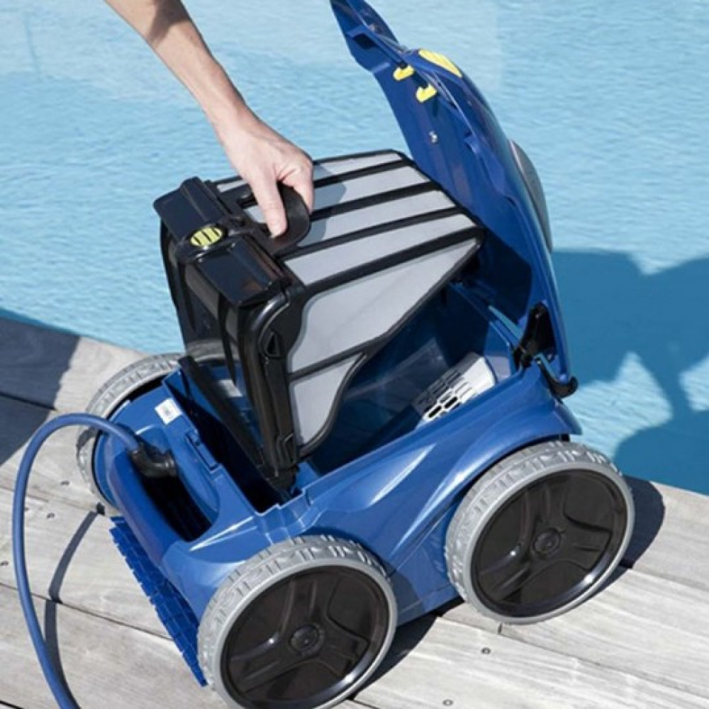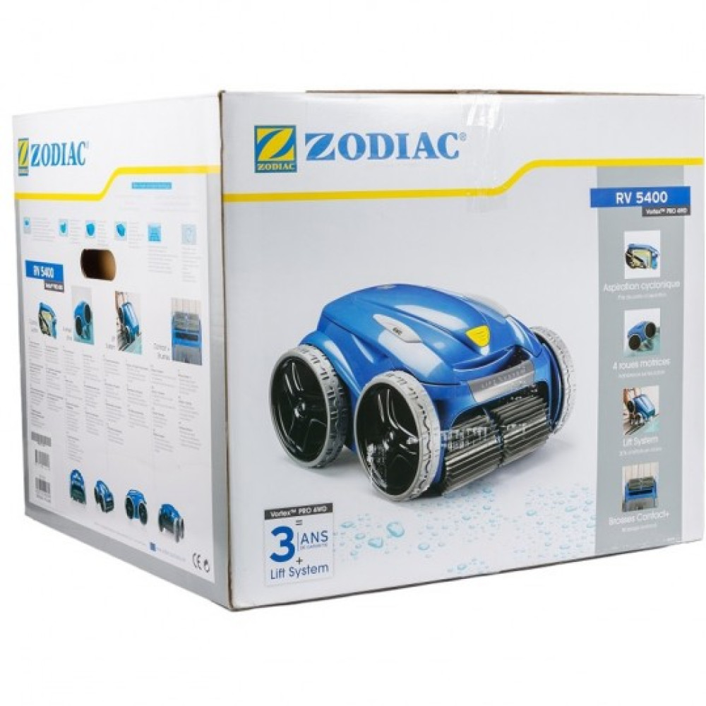 Существует огромный выбор современных девайсов для проведения уборки в водных резервуарах. Современные роботы-пылесосы отлично сочетают в себе красивый дизайн и высокие показатели в работе. Робот-пылесос Zodiac Vortex PRO RV5400 хорошо справится с очисткой вертикальных поверхностей, дна и труднодоступных мест. Отличается модель весом в 9,5 кг. и длиной кабеля в 18 метров для подключения в сеть. Большим преимуществом аппарата является регулировка продолжительности уборки в зависимости от степени загрязнения чаши. Оснащена модель щетками из полимерного материала, которые не повреждают стенки резервуара. Предназначена модель для бассейна до 70-75 м².