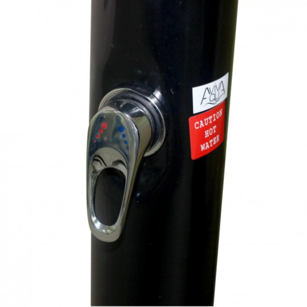 Душ для дачи AquaViva. Модель 70508. Бак на 20 литров, прямая форма с однорычажным смесителем. Конструкция из окрашенного алюминия и PVC черного цвета. Корпус пластиковый, металлическое основание. Металлический смеситель имеет хромовое напыление. Нагрев происходит от солнечных лучей. Подключение к обычному садовому шлангу. Оптимальный выбор для установки на опалубке вокруг бассейнов. Может ставится в саду и использоваться без бассейна. Удобное решение чтобы освежиться летом.