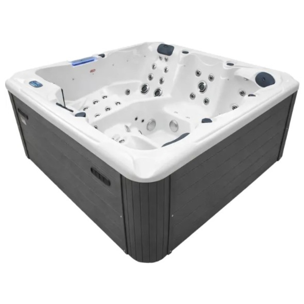 Гидромассажный бассейн Aquajoy Santorini (220х220х95 см), Серебристо-белый мрамор — это надежный и продуманный СПА-бассейн, ориентированный на комфорт и регулярное использование. Он сочетает эффективный спа гидромассаж, качественные материалы, энергоэффективную теплоизоляцию и современную систему управления.
