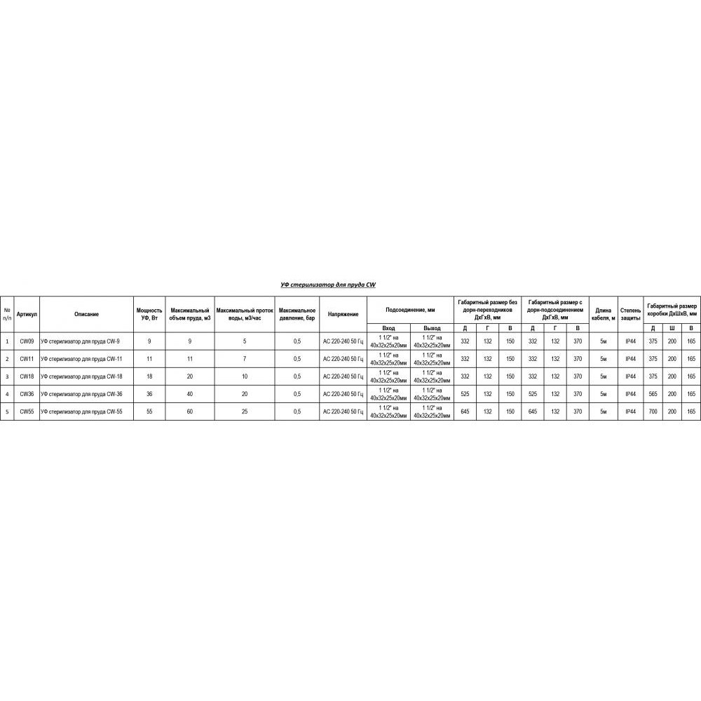 Данный ультрафиолетовый (УФ) стерилизатор CW-9 эффективно удаляет водоросли и прочую патогенную среду при помощи UV-C излучения, которое создается UVC лампой расположенной внутри корпуса изделия.