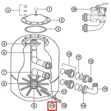Комплект соединен для 6-позиционного вентиля Hayward SPX0719KIT. Комплект состоит из деталей (см. рисунок): 11, 12, 14, 15, 17...