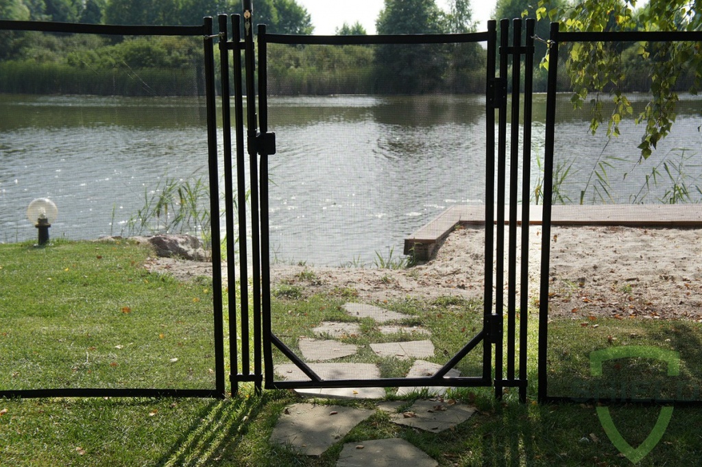 З будь-якого зручного боку захисної огорожі можна додатково встановити дверцята-хвіртку, які забезпечать досить зручний доступ в огороджену зону. Доступ можна перекривати завдяки самоблокуючому замку з ключем у хвіртці, яка замикається на той час, коли басейном не користуються.